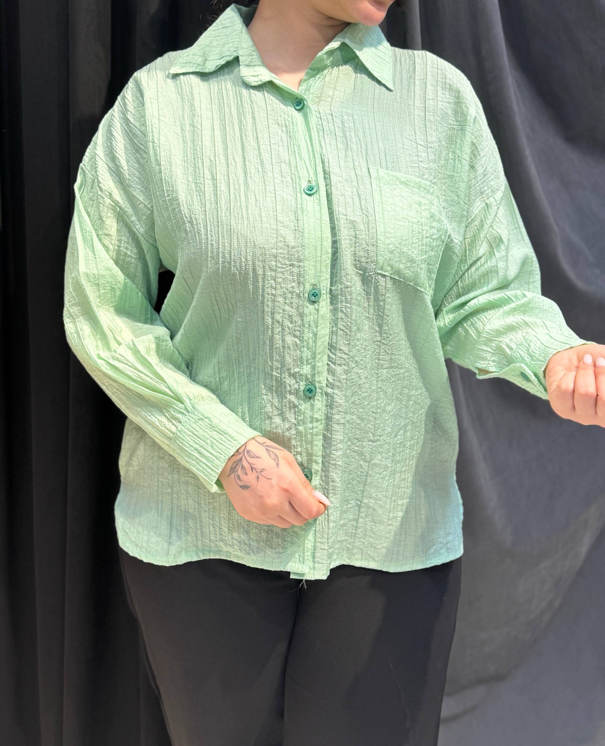 مدل شومیز خنک سبز پسته‌ای برای تابستان قد ۸۰