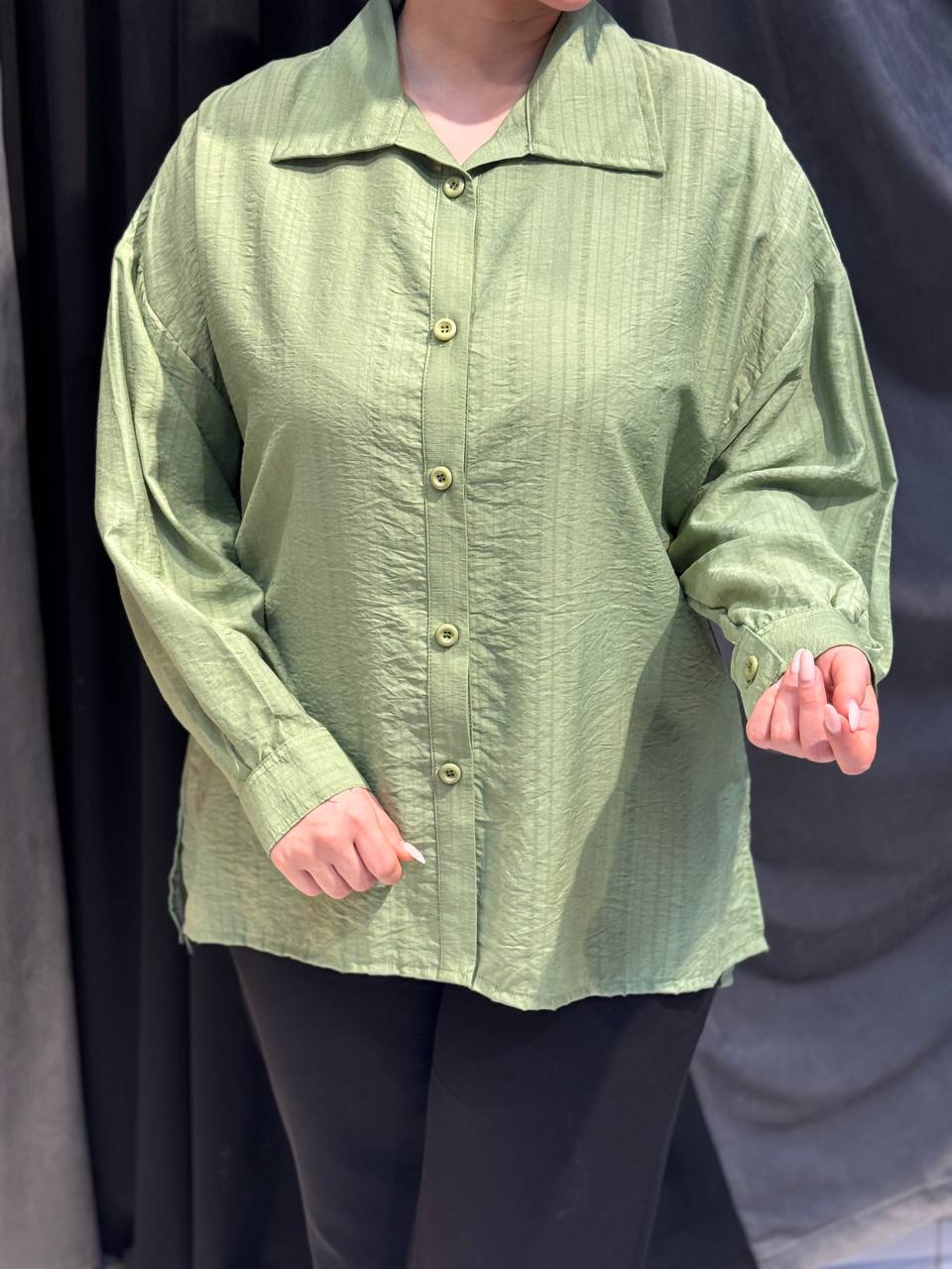 ناموجودشومیز مانتویی تابستانه خنک جنس نخی خارجی فریسایز (مدل یقه مردانه کلاسیک)