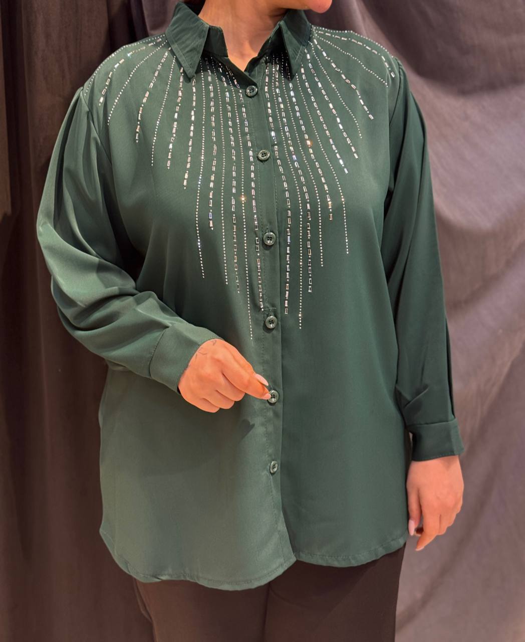 ناموجودشومیز مجلسی نیهان ترکیب کرپ ساترون و دانتل کریستالدوزی شده (سایز ۳۸ تا ۵۲)